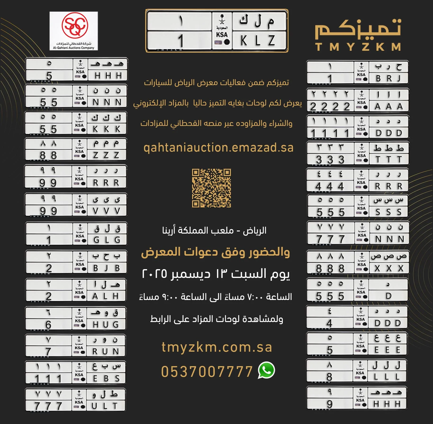 لدينا عروض حصريه لم تعرض من لوحات سيارات وأرقام جوالات